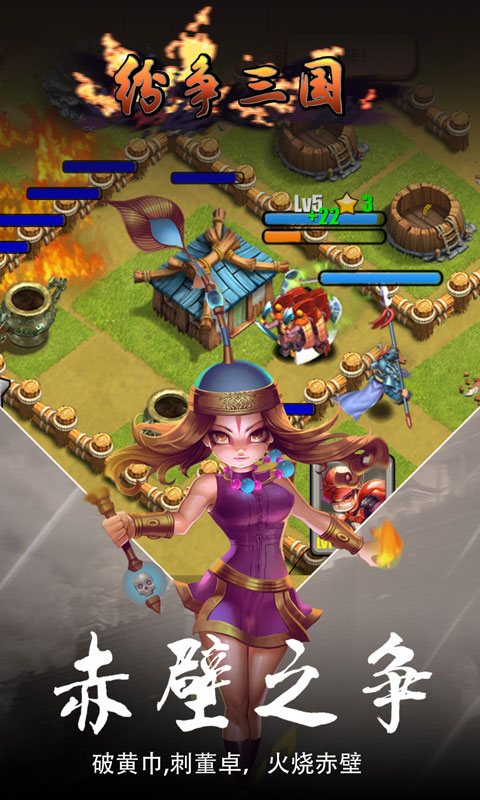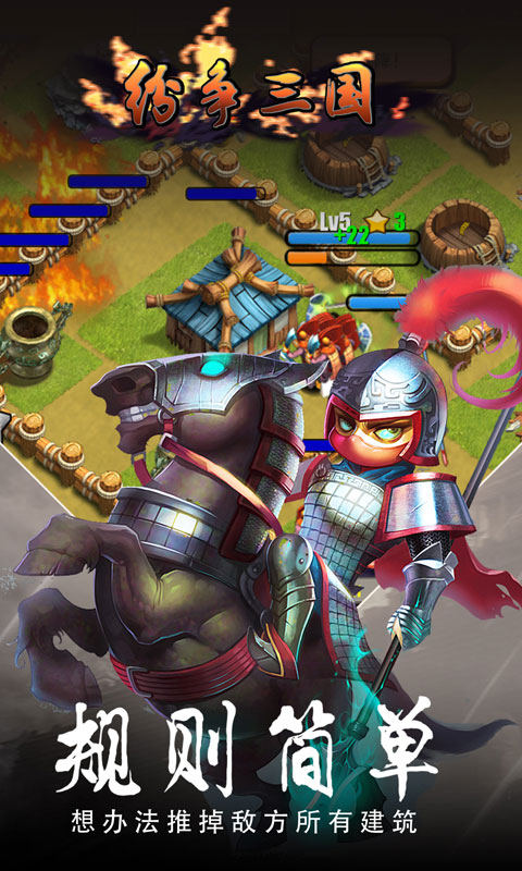 纷争三国变态版是以三国演义为背景,集休闲与益智于一体的coc类型游戏。游戏内容丰富、玩法多样;玩家扮演一方诸侯,体验经典的三国战役,在乱世中和其他玩家斗智斗勇,攻城掠地,修缮军备,过关斩将,还有一场场热血彭拜、激情四射的战斗。更有排兵布阵、英雄组合搭配等玩法。