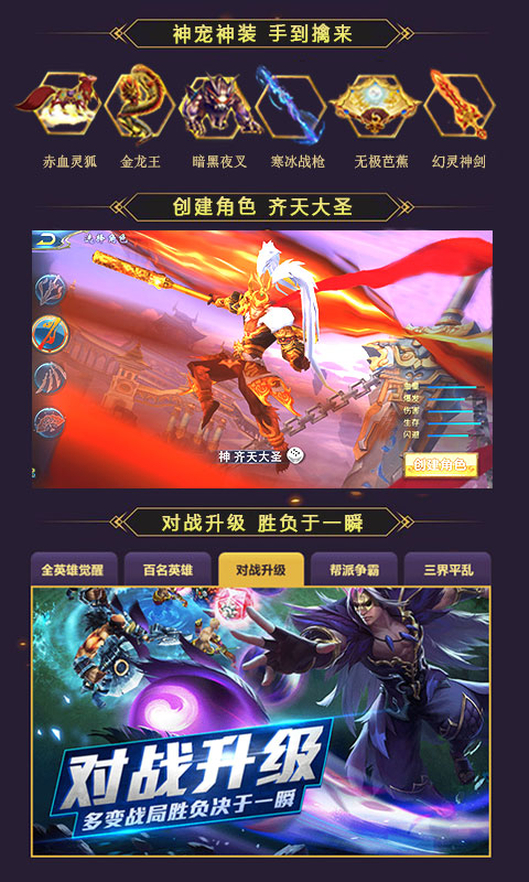 故事发生在大闹天宫的500年后.三界分仙魔两阵营,这是不一样的西游,大圣不再去取经,成仙成魔由你来抉择,如来佛也可被玩弄于鼓掌之中。《我必封天3d》是3d超清电影画质,细致毛发逼真还原的3dmmoarpg手游巨作。首创时间轴战斗,拼策略,也拼速度,内嵌自由交易系统 不花钱也能玩的爽的。所有物品都可以靠打获取!无需充钱!玩法更有三界共主,仙魔争霸,仙魔大乱斗,自由1v1,1v3,千人仙魔阵营战,可谓是百花齐放。如果喜欢3d的玩家一定不能错过,会飞的筋斗云,72变悟空,一切装备自由制作。只有你想不到,没有你做不到!来一起玩转西游大作《我必封天3d》。