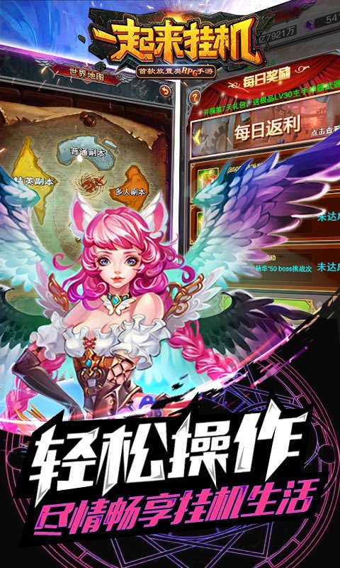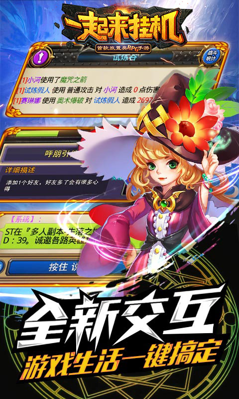 一起来挂机变态版是一款休闲放置玩法的多人联网魔幻冒险趣味格斗类手机网游,丰富主线/支线任务让打怪升级布置单调,精英、多人副本挑战极品武器等你来爆,同城ip交友互动结识更多的小伙伴一起冒险,超劲爆战斗场景引爆大家眼球。