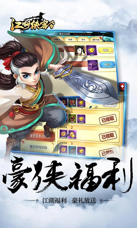 4.每日在线奖励:每日在线即可获得元宝*1300、大量铜钱、海量道具;