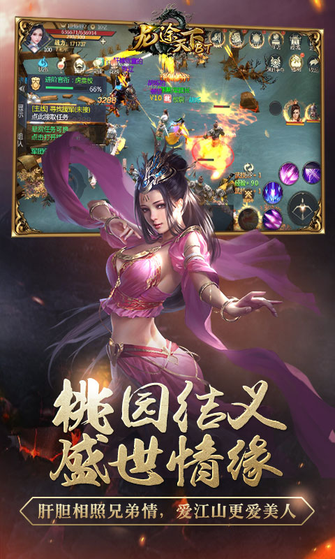 《龙途天下变态版》是一款由三国为背景的3dmmorpg国战手游。以畅快pk、国战、王位争夺战、守护佳人、多人刷boss、挑战副本为主要玩法,通过武将、佳人、装备、神兵、坐骑、披风、时装、武神、军团、姻缘、结义等系统的培养提升玩家综合实力,和兄弟结义与佳人相伴,征战四方,一统天下!游戏摆脱传统单调的手游方式,为玩家呈现不一样的三国世界。 主人公在游戏中作为一个现代的保卫人员,在追回展会展出的玉玺中,被玉玺里一股神秘的力量带回到了三国时期,在寻找回去的办法过程中,主人公亲身感受三国时期那荡气回肠的史实,游戏过程中,主人公平黄巾,结豪杰,灭董卓,夺官渡,烧赤壁,建势力,定天下,让玩家演义自己的三国舞台。