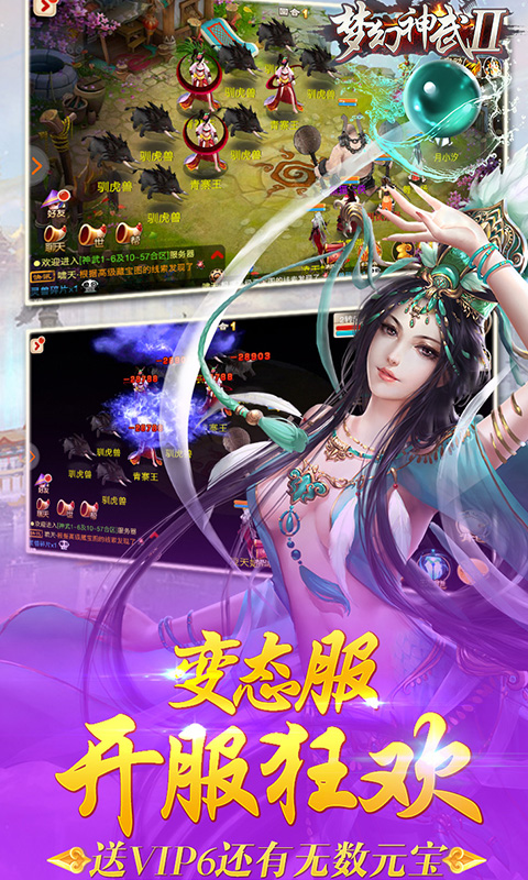 1、上线送vip6、6888元宝、9999银两、388888铜钱
