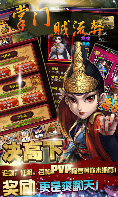 掌门贼流弊变态版是一款武侠题材的战斗卡牌手游,精美的游戏画面,全新打造的风云世界,激情的游戏关卡设定,为玩家带来了更丰富的战斗体验,丰富的关卡更具有挑战性,喜欢的玩家赶快下载体验吧。
