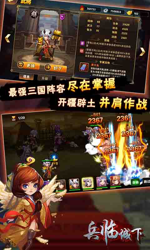 《兵临城下变态版》是一款以三国演义题材为切入点的带有穿越剧情设定的游戏,在这里既有侠义精神,又有大义情怀。在经典卡牌rpg的基础上增加军团强交互pvp战棋国战玩法。并独创战场指挥系统,使每一场战争都能有足够的策略性和竞技性。充分展现三国演义勇斗智战的逗引埋伏,奇谋妙策。既有正面战场上的指挥若定,冲锋陷阵,又有侧面战场上的上兵伐谋,运筹帷幄。每一场战争大家不仅比拼的是谁一方的战力高,更比拼整体的团结协作,外交谍战,使整个国战体系更立体更全方位,更能体现人的重要性。除此之外,在基础体验上,我们还有q萌帅气的角色,酷炫霸气的战斗,烧脑灵气的策略,丰富多彩的收集,引人不禁的育成体系。而在军团的大背景下,我们将军团内部划分成各个军阵,并配以演武等多种军阵对抗玩法,使军团中每个成员都能有勇武之地,找到自己的存在价值和意义。