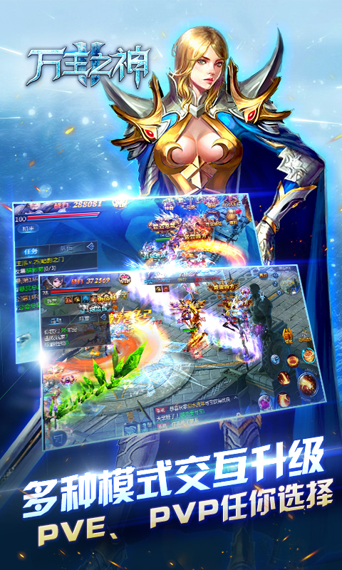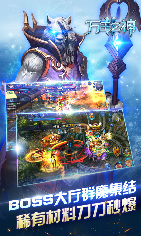 《万王之神变态版》一款3dmmoarpg欧美系即时战斗手游,真人交互、跨服国战、boss争夺,全地图组团pk爆神装,点爆战火!3d全境大地图,真实还原唯美、壮阔的魔法玄幻世界场景,超爽格斗系统,酷炫的,超大范围攻击技,千军万马,一人可敌之。华丽时装、炫彩神翼、霸气坐骑、专属神宠,展现强大的战斗力;打造神兵,攻无不克,觉醒圣戒,战无不胜。开服七天好礼相送,史诗神格助成长;在线奖励天天有,各式好礼拿不停。