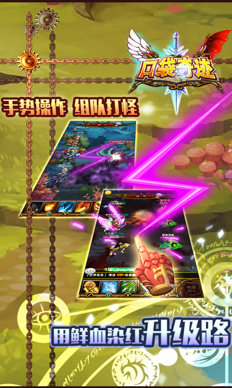 《口袋奇迹满v版》是一款2d arpg游戏,游戏采用q版美术风格,魔幻游戏题材,独创的回合制手势触屏画符战斗,丰富的装备系统,上千种装备形象,刺激的多人团战,让你重温经典。