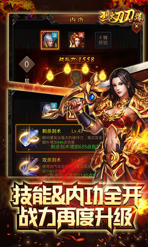 烈火刀刀爆高爆版是一款极其热血的传奇经典类角色扮演手机游戏,采用先进3d引擎构建热血战争世界。丰富的职业、角色可供选择,特色技能随心搭配,跨服赛季、多模式pk、跨服争夺boss等多种模式和特色玩法感受不一样的传奇冒险,还等什么?赶紧来下载试玩吧!