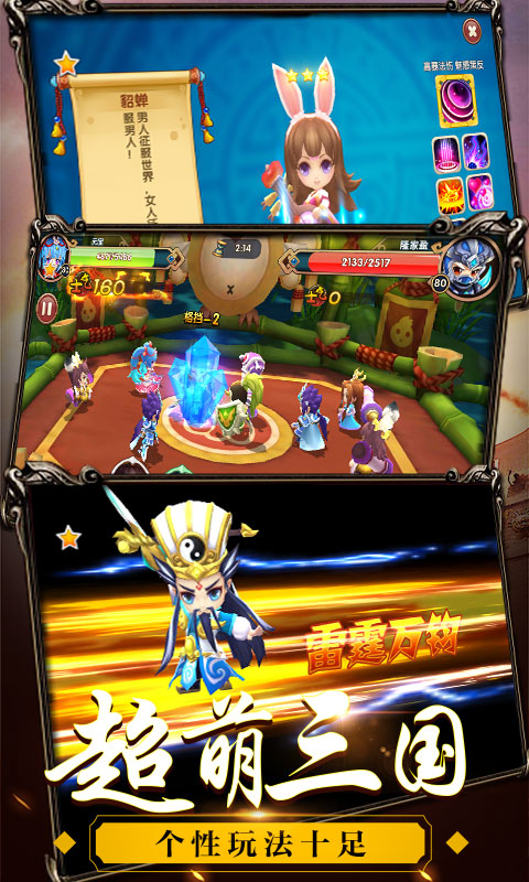 《纯三国海量版》是一款q版三国策略类手游。让我们一起揭开三国的阴谋,揭晓真相!老滑头董卓称帝了,大胡子曹操在官渡之战战败翘辫子啦,饶舌高手诸葛亮因熬夜撩妹误判天气变化,错借西风致使刘黄叔于赤壁惨败。有人说是因时空乱流而造成的,你信吗?让我们进入《纯三国海量版》挖掘一下真相吧!