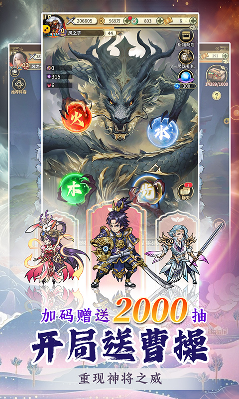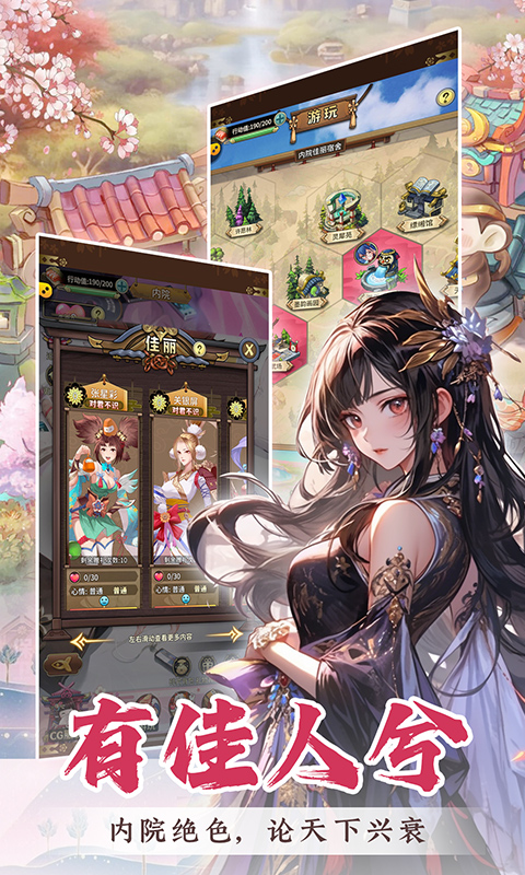 1、三国题材,5v5回合制卡牌 2、武将养成、主线剧情、梦境、试炼幻境、古墓历险等各类具有挑战的副本,考验玩家对阵容养成、三国知识储备、游戏剧情等方方面面,挑战成功后可获得各种豪华奖励 3、内院玩法中可与三国佳丽莺莺燕燕,培养彼此之间的感情,解锁各类cg与剧情