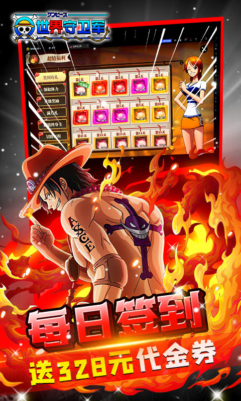 《世界守卫军(尼卡路飞0.1折)》是一款集聚休闲、策略、养成与一身的海贼3d回合卡牌游戏;每日签到送328元代金券,新手上线送ur-尼卡路飞,7日登录送s级伙伴:艾斯、大熊、鹰眼,ss级伙伴大船长巴基、香克斯、汉库克,ur级伙伴尼卡路飞;七日奖、升级奖励、满月礼累送万元充值卡。3d极致还原,再寻伟大航线!