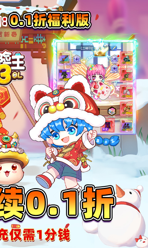 《冒险王3ol(0.1折怀旧服)》是冒险王手游系列的又一新品,传承了冒险王系列手游的经典玩法和美术风格。上线就送免费充值工具,直接免费激活首充,还能激活所有福利卡拿海量资源,每日累充,充全部激活,全场0.1折购买,拿海量金币且激活游戏内大量累充活动,拿极品奖励!每天登录活跃就可领取海量充值卡!百万充值卡上亿彩钻等你来拿!充值卡直接激活贵族vip!神级还原了吸怪的经典玩法,q萌boss满身神装等你爆,还有数千种时尚搭配。神秘的未知大陆,q萌的冒险世界,快来和小伙伴们一起找回最初的快乐吧!