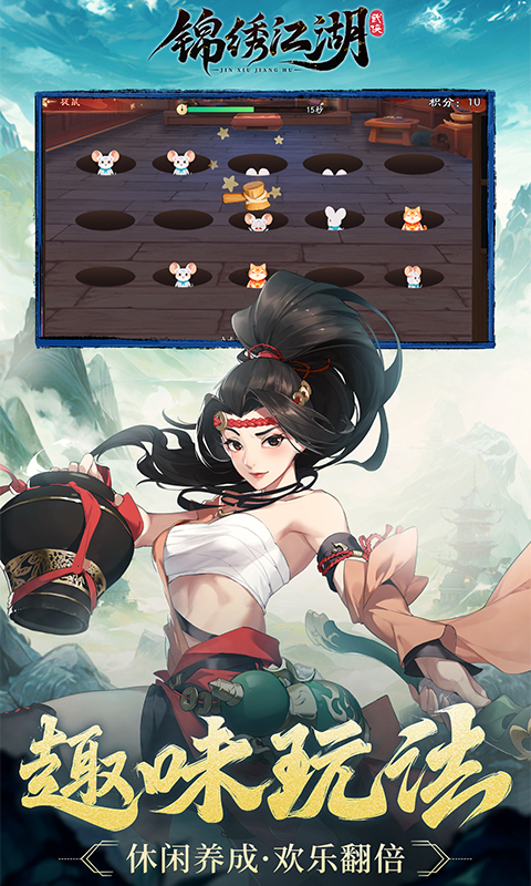 《锦绣江湖》是一款非常出色的武侠放置卡牌手游,它以独特的玩法和精美的画面吸引了众多玩家的喜爱。如果你喜欢武侠题材和放置卡牌玩法,那么这款游戏一定不容错过。 除了侠客的培养,游戏中还有多种玩法,如侠客行、断龙谱、论剑、演武场、北峰塔、藏宝地、奇闻录、酒楼等,这些玩法不仅可以提供玩家更多的游戏体验,还可以通过完成任务和挑战来获取更多的奖励和经验值。 在游戏的画面上,《锦绣江湖》采用了写意国风的设计风格,无论是人物立绘还是场景塑造,都展现了中华传统特色。游戏中的每个场景都精心设计,还原了最真实的武侠江湖氛围。同时,游戏的音效也十分出色,配合着游戏中的各种场景和任务,让玩家更加沉浸在游戏中。
