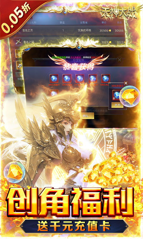 大型人气魔幻福利手游《天神大战》0.05折火热上线!登录即激活0.05折特权,游戏所有充值永享0.05折,充值648仅需3.24元!游戏故事背景设定在圣言之战结束后,大天使不知所踪,魔王打开了地狱之门,魔族再次向人族发动战争。人族由于种族间的力量差异,节节败退。在关键时刻,教会发动了大天使传承下来的秘术,勇士们继承了大天使意志,在战斗中锤炼自己,掌握全新技能,获得天使传承,化身大天使勇斗魔神!