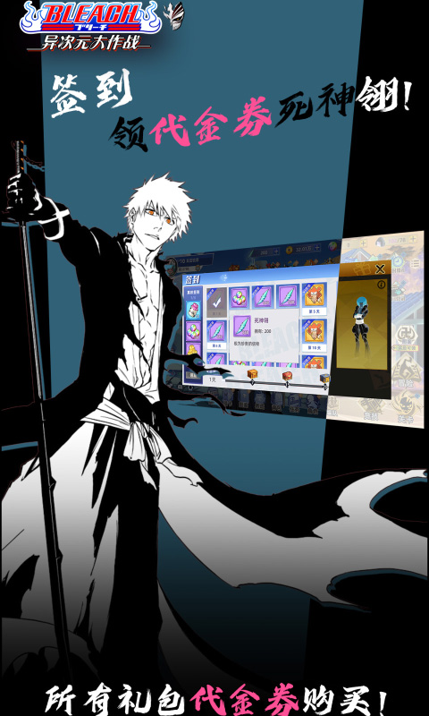 3、签到领死神翎(代金券),所有礼包皆可使用代金券购买;