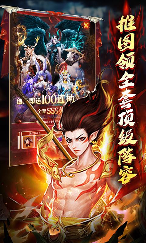 2.推图和挂机可得万抽、全套顶级sss阵容、大量充值卡、欧皇红包等海量福利