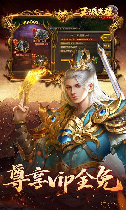 《王城英雄》是一款大型多人在线的魔幻类arpg手游,游戏采用全新的设计理念,玩家可学习各种炫酷的绝学秘籍,这意味着更丰富的技能选择和搭配,可玩性大大提升。游戏中的玩家的装备打破以往传统,每类装备拥有不同的成长方式,玩家收集不同装备,激活套装属性,不仅可以解锁下一大陆的入场资格,同时可获得不同的神兽之力的加成,给玩家的英雄之路上提供坚实有力的战力保障。游戏还有许多的免费特色玩法,比如全等级vip打怪免费送,vip不再是土豪的专属,为了考虑普通玩家的利益,我们专门设计了“幸运大爆”机制,只要触发幸运大爆,任何怪物都有概率掉落高品质的装备,够爽,够味!