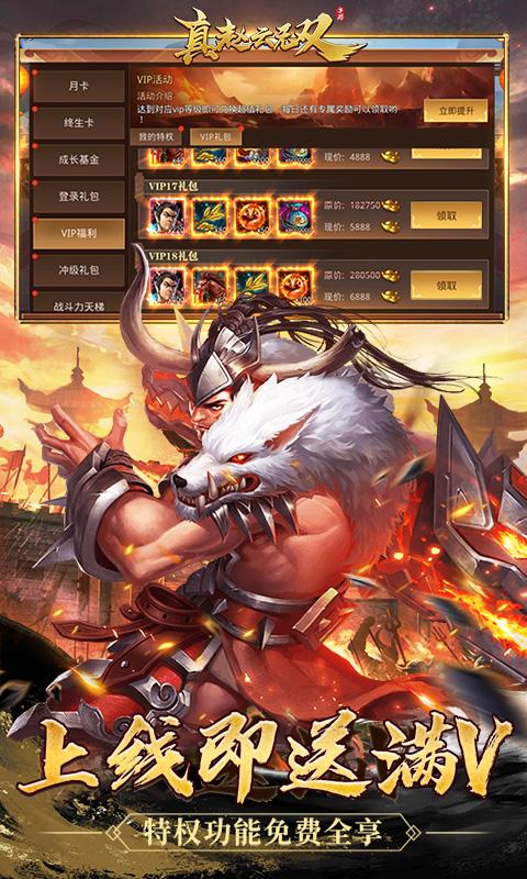 1.充值折扣:充值永久0.05折,充值打折,福利不打折 2.上线福利:上线送满v,开局五虎上将。 3.签到豪礼:签到领取顶级25资质神将 4.登录豪礼:每日登录送千抽,再领万元元宝。