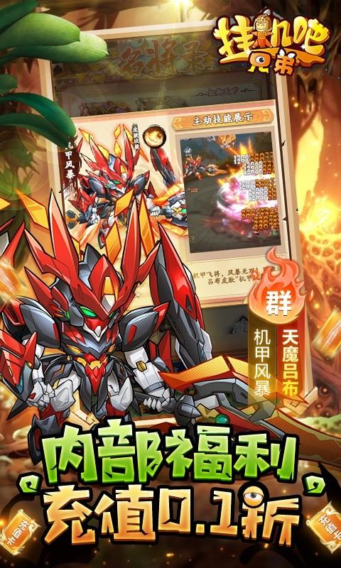 开局送充值0.1折扣号,创角送gm修改器、余额免支付、神将全免、十万真充。《挂机吧兄弟(内置折扣刷充版)》是一款奇趣三国类题材的放置卡牌手游。游戏有新颖的搞怪战斗,并融入了大富翁和随机事件的剧情任务,还有创新的合成资源产出模式,实现了资源的可视化,不仅能策略操作,也能休闲挂机。多维度策略战斗机制,开放自由的卡牌养成系统,并且融合了三合一及大富翁的玩法,游戏涵盖了丰富多元的玩法及体验,无论是策略布阵以计谋取胜的机智大佬,还是挂机休闲想一键收获的佛系玩家,《挂机吧兄弟》中都有相应玩法。