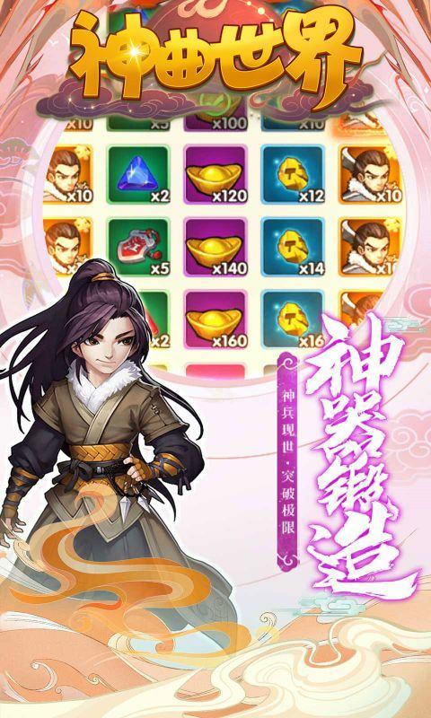 《神曲世界》将完美还原武侠小说中的江湖侠客,超过200个的侠客让您可以自由选择。游戏内拥有超过120种的武功秘籍,让您体验丰富的招式克制,组合多样的玩法类型,尽展各路绝学。还有超多贯穿古今的神兵利器,助您轻松成为一代豪侠。丰厚的等级礼包活动累计送出超过万元的道具奖励,还有每日签到等你来领取,让您轻松体验游戏,一路爽到飞起。游戏还支持自动闯关、离线自动闯关,让你一觉醒来资源拿得手软,还不快来体验!