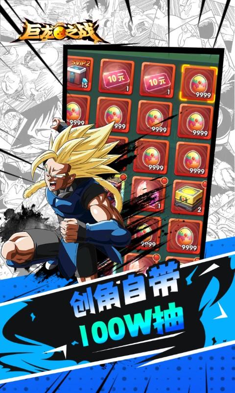 超爽横版龙珠卡牌手游-《巨龙之战(顶级卡无限送再0.1)》震撼来袭!全场0.1折是必须的,毕业神伙伴永久乱送!毕业级霸服商城全部可免费开启!百万高抽道具、全屏aoe蓝悟空、红装等炸裂新手福利不能少!更有无限充值卡、无限资源等泼天福利等你来领!怀旧经典ip改编而成,华丽的视觉战斗设计,完美展现最真实的打斗,体验最震撼的打击快感,与超级赛亚人组队,一起闯出一番天地吧!