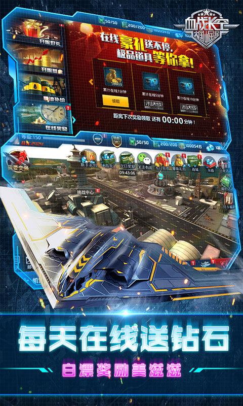 《血战长空-大国崛起》全民飞机,全民0.1,全部充值永久0.1折!七天登陆送极品红色飞机,全民飞机大作战!七日狂欢送好礼,每日福利领不停!每天在线送钻石,白漂奖励美滋滋!