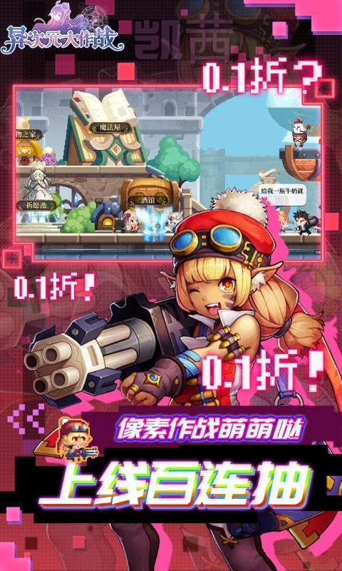 《异次元大作战(转生后竟是0.1折)》是一款像素风塔罗挂机游戏!重磅消息!!0.1折版本上线咯,648元充值只要6.48元! 上线送v5,白连抽;引导走完就可输入代码获得648元充值卡;挂机闯关还能获得大量充值卡福利,最高可以合成648元充值拉;免费vip用648元充值卡免费激活,还能提升代码输入次数,多档奖励,输入代码免费刷;