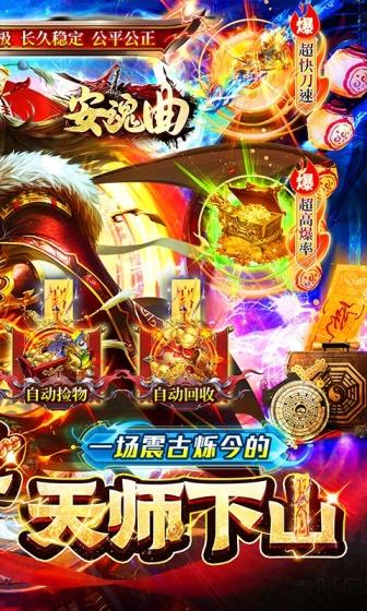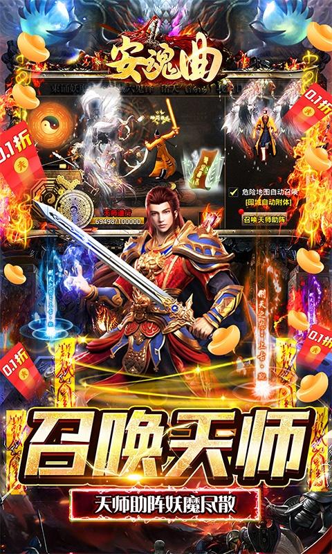 《安魂曲(0.1折爆爽天师三职业)》充值永久0.1折!新的玩法新的激情,天师来袭妖魔退散!上线就能领取大量福利,百张地图,千倍爆率,散人也能登顶!永久打金,天天豪礼,上线就开放所有职业技能,攻速拉满玩的更爽!各种大礼包,多倍返利,所有属性爆率真实有效,升级天师更有超强属性加持,每一刀都可能有惊喜,还在等什么快来下载体验这不一样的热血传奇吧。