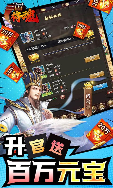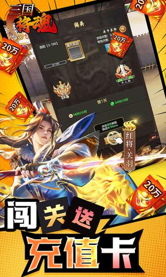 《三国将魂(红将关羽免费》是一款以三国为题材的竖版挂机闯关手游,登录即送红将关羽,七天登录再送极品红将关羽实力更上一层楼!不仅有激情闯关玩法,还有休闲的挂机加成。在这三国乱世,天下大乱,烽烟四起,通过养成提升带领武将们一统三国吧!