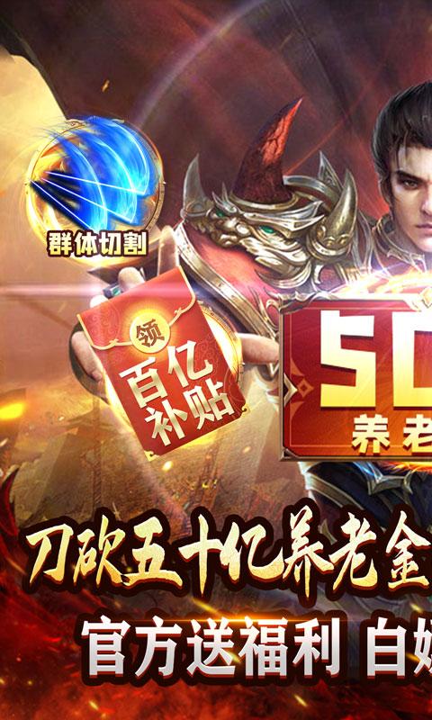 1、上线送群体切割、百世轮回套装、永久称号、限定時裝,海量福利登录就送!