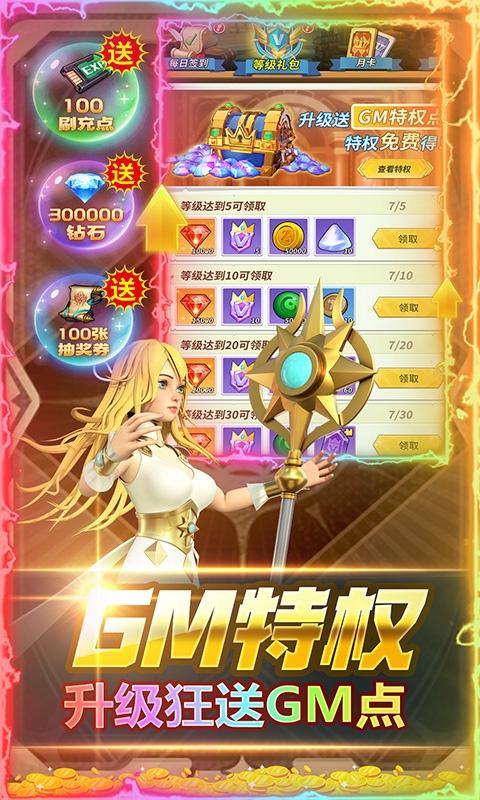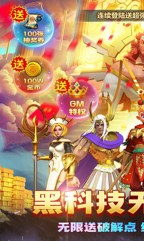 1.登录就送gm特权、100抽奖券宝箱,100破解点,100万金币,300000钻石!