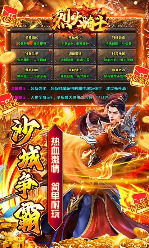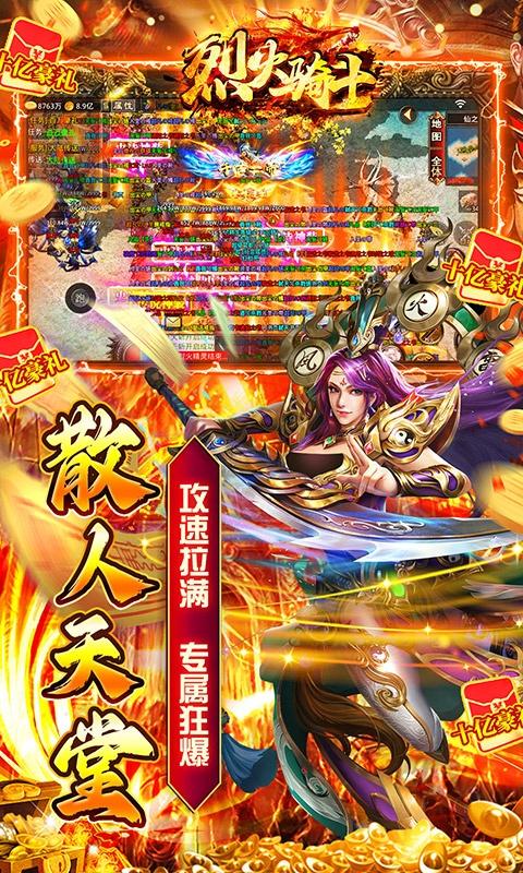 超爆满攻速无限刀传奇《烈火骑士》火热来袭,这是一款超攻速迷失版本的复古传奇手游,创新战士跑步火墙,刷怪效率拉满。上手简单好打好玩,超多大陆地图不用担心无怪可刷,游戏内带有大陆传送系统为大家的挂机爆装提供舒适体验。百件装备千件专属,超强buff属性pk我为王,更有十亿豪礼倾情相送,好玩好爆好口碑传奇,快来下载一起体验!