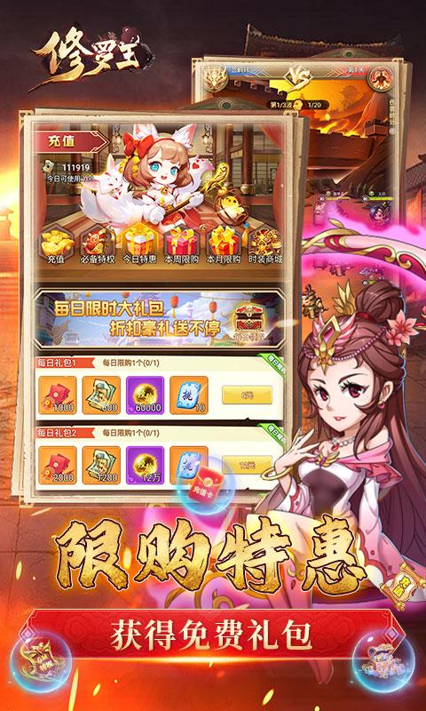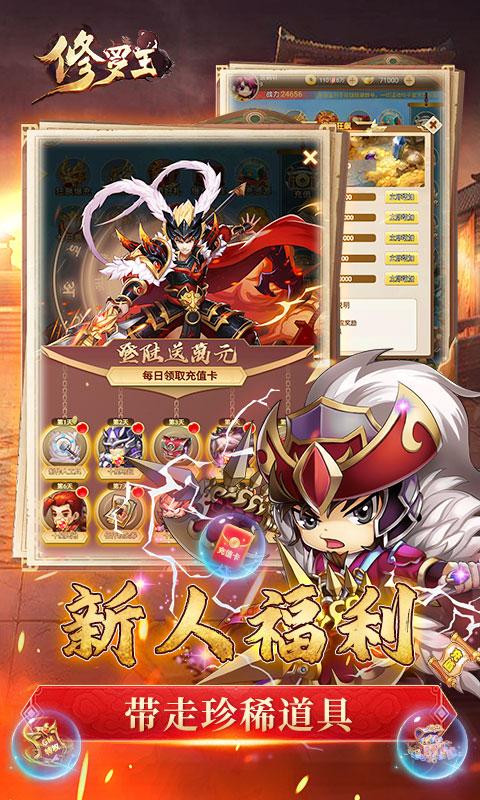 修罗王(全十星限定狂乱飙)是一款卡牌类三国手游,福利再升级,多种游戏玩法,全新体验上线!让你在游戏中不再枯燥!走心的剧情设计,跨越时空的战斗就此开启!超强三国英雄带你角逐三国之巅!经典6v6,体验各时代英雄集结的力量,统率三军征战四方,一统乱世!由你排兵布阵,带着三国勇士打下属于自己的江山!多样的玩法体会不同的三国情怀!十星英雄上线就送,快来征战三国,平定乱世,成为三国之巅霸主吧!
