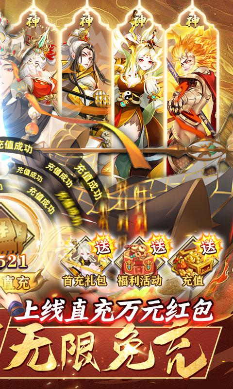 演绎商周三界混战,百位神魔妖怪登场;阵营搭配,自由组合,轻松推图;放置战斗,离线收益,睡觉变强;玩法多样,福利不停,国风放置手游诚挚邀您,续写商周神话!