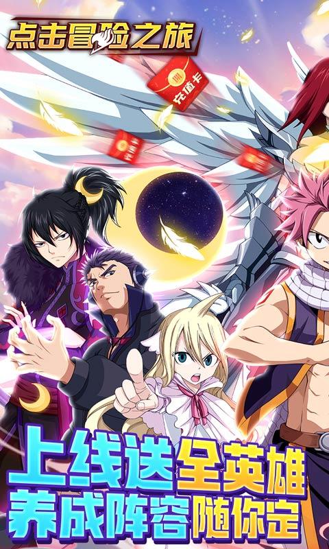 《点击冒险之旅(翻倍gm爽充)》一款以《妖精的尾巴》为主要题材的卡牌游戏,上线直接送满v,全英雄礼包,gm修改器。研发数年匠心打造,献给玩家一款高品质有策略的卡牌手游。 高度还原动画的经典情节。纳兹、露西、艾露莎等众多人气角色悉数登场,一起重温那些热血沸腾的精彩瞬间! 游戏中加入了诠释魔法和灭龙奥义的技能,高度还原的公会元素和角色阵容系统、技能释放、阵容排布都影响着战斗结果,与值得信任的伙伴一起冒险,结识更多强力伙伴!