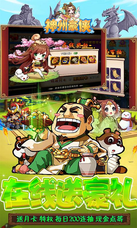 ★在线福利:在线领取三国特权、月卡、现金点、百连抽以及顶级红色武将和专属神器,每日还送200连抽