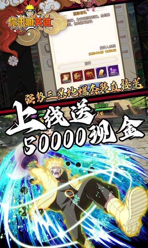 《你来嘛英雄(影级刷充爆打万金)》超影级挂机火影手游;制作精良,乐趣十足,福利满满,真正做到“不花一分钱,玩转火影世界”;每天上线送超值福利签到大礼,登录还赠送数十万现金券,让你想停都停不下来;首发送传说中的三忍助力,无敌之姿所向披靡;更有火之意志、影之特权,霸气加成!还在等什么,英雄,你来嘛?