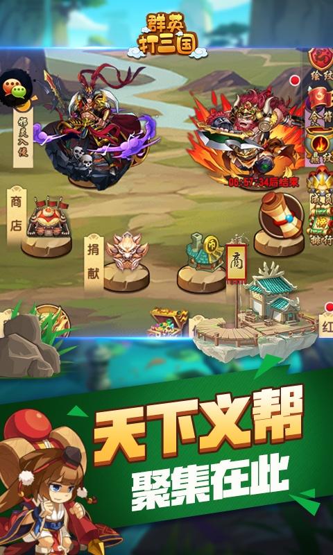 《群英打三国》是一款三国题材卡牌手游。游戏内加入三国时期各个经典的文臣武将,融入全新的故事情节,对三国故事进行全新的演绎。上线即送大量福利,助力玩家开启不一样的三国。玩家在游戏中可招募武将,体验名将簇拥的主公体验。快来提升武将实力,和他们一起并肩战斗吧!