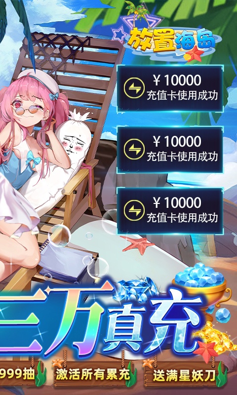 《放置海岛(白给万充爆衣版)》是一款画质极高的角色扮演卡牌类手游。在线登录就送万元真充激活所有累充活动包括月卡累充等!还有送999高抽,战力阵容直接飞速成长,精美丝滑的战斗画面、极高的抽卡率都成为了它独特的亮点,多维度玩法,全方位养成,更融合了多种pve玩法,让玩家通过自己的谋略解锁更多意想不到的战姬阵容,此外,丰富的剧情和知名声优能让玩家在错综复杂的故事线中身临其境地体验不同的人生。 舒爽轻质画风,带你重回初心找回快乐,回归二次元本真模样,不常见的亮色简洁扁平轻质感的立绘与ui,不仅是你的肝,你的头发,我们还要呵护你的眼!