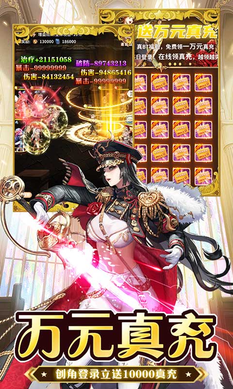 5、创角即送vip20、钻石888888、10000元充值卡包;