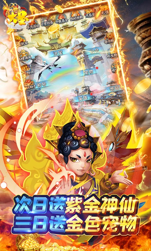 4、次日登录送紫金神仙,三日送金色宠物,连续登录再送海量资源。
