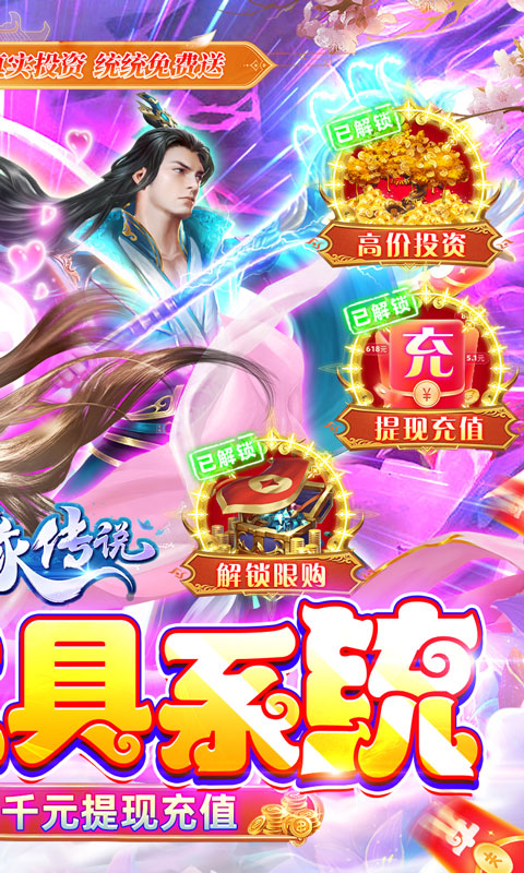 1、上线送vip6、炫酷时装、仙玉*18888、灵玉*18888、现金充值卡1000元