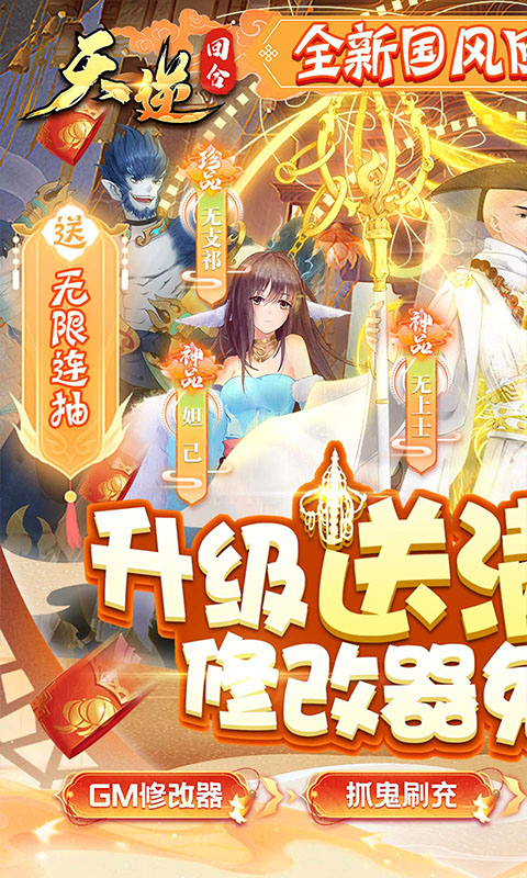《天逆(送满突破刷充)》是一款全新以封神为题材的国风回合制手游,游戏上线就送vip10、20w元宝、3000w银两、9999充值点、式神百连抽以及打金特权!升级送两万充值,升级送满突破式神,活动送满觉醒式神,0氪也能养成拉满!打金特权只需完成任务、参与活动即可获得海量直充点,免费直充,元宝直充、月卡、终身卡、投资基金、直购礼包全部gm修改器免费激活!100%变异、海量幻化时装仅需登录即可免费获取!支持跨服组队,打造良好生态,再也不担心活动找不到队友参与活动,让您享受最舒适的回合制乐趣!