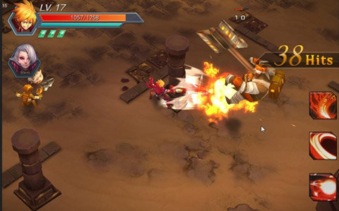 这款游戏采用的是触摸滑屏的操作方式,只需要点击角色移动到怪物身边,便会自动开始连招攻击,动作非常酷炫。仅仅依靠触摸和滑屏的操作,可以做出很多非常刺激的战斗技能,比如向上滑屏可以发动上挑技能,将怪物挑起飞到天上,在空中展开一轮攻击。攻击过程中,主角不仅可以使用手中的镰刀、扇子、大刀来进行攻击,还可以换出枪炮来进行远程攻击。如何利用好近战、远程、追击、上挑这些攻击方式,组合出自己的一套连招,是战斗成败的关键。