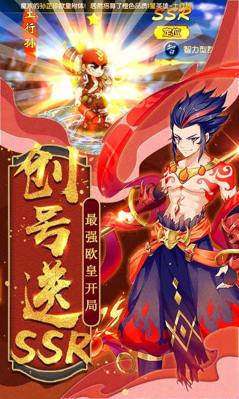2.充值比例1:200,创号免费抽ssr,欧皇附体,神将开局,斩妖除魔!