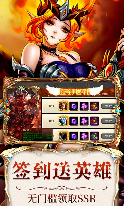 4、累计签到,每日送英雄,七日就送顶级ssr,阵容无忧养成!