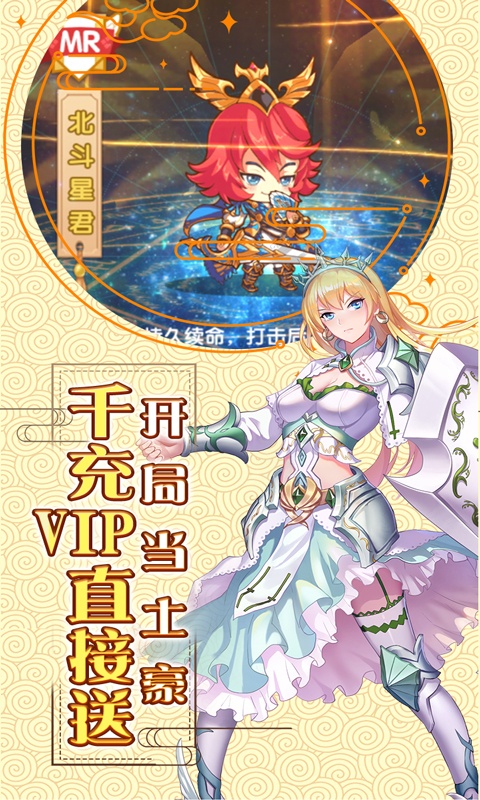 1.千元充值大礼登录送,上线即是v15(满v),会员礼包直接拿,开局就有豪华特权。首充三倍,充值比例1:1000