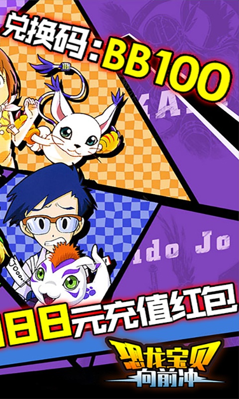 《恐龙宝贝向前冲》是一款以集数码兽养成、策略于一体的卡牌rpg手游。游戏上线就送满级vip15 28888钻石 1亿金币,开局送100元充值红包和6星神兽礼包(100元充值礼包码:bb100,6星神兽礼包码:vip888)。天天签到领寻宝劵,无限送连抽,免费抽取极品数码兽/绝版翅膀皮肤等珍稀道具!究极神宠不是梦!扭蛋必出六星极品数码兽!冲级累计送1000元充值钻石红包!连续登录还有超值代金券、神兽礼盒等等海量福利资源及福利红包!再加上跌宕起伏的剧情故事,带你进入你记忆中的数码世界。暴龙兽、蔷薇兽、黑钢铁加鲁鲁等强大究极体全部化身并肩而战的伙伴,还有更多经典角色客串,快一起来守护数码世界吧!