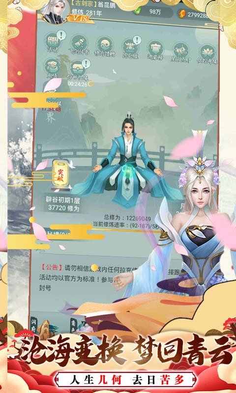 看潮起潮落,云卷云舒,人生又有几何?端心正意,不为众恶。全新清爽的文字修仙游戏《逍遥八仙(送千元充值)》正式上线!画面清新脱俗、玩法丰富有趣,在这你能享受惬意舒心的修仙之旅,体验渡劫飞升的极致乐趣。惊世仙缘,与君相聚。