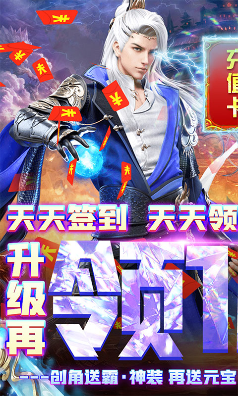 1、登录送vip10、元宝*88888、绑元*100万、霸·御风神装;
