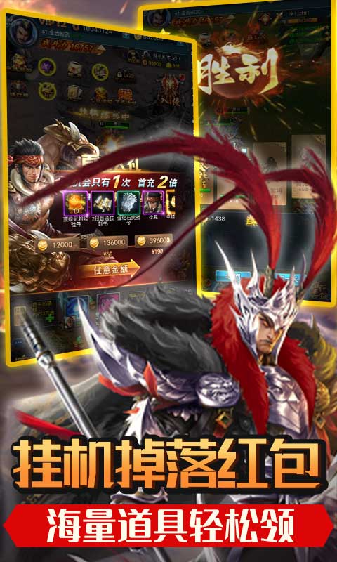 1、游戏内送数千充值,礼包神将免费送,畅爽游戏